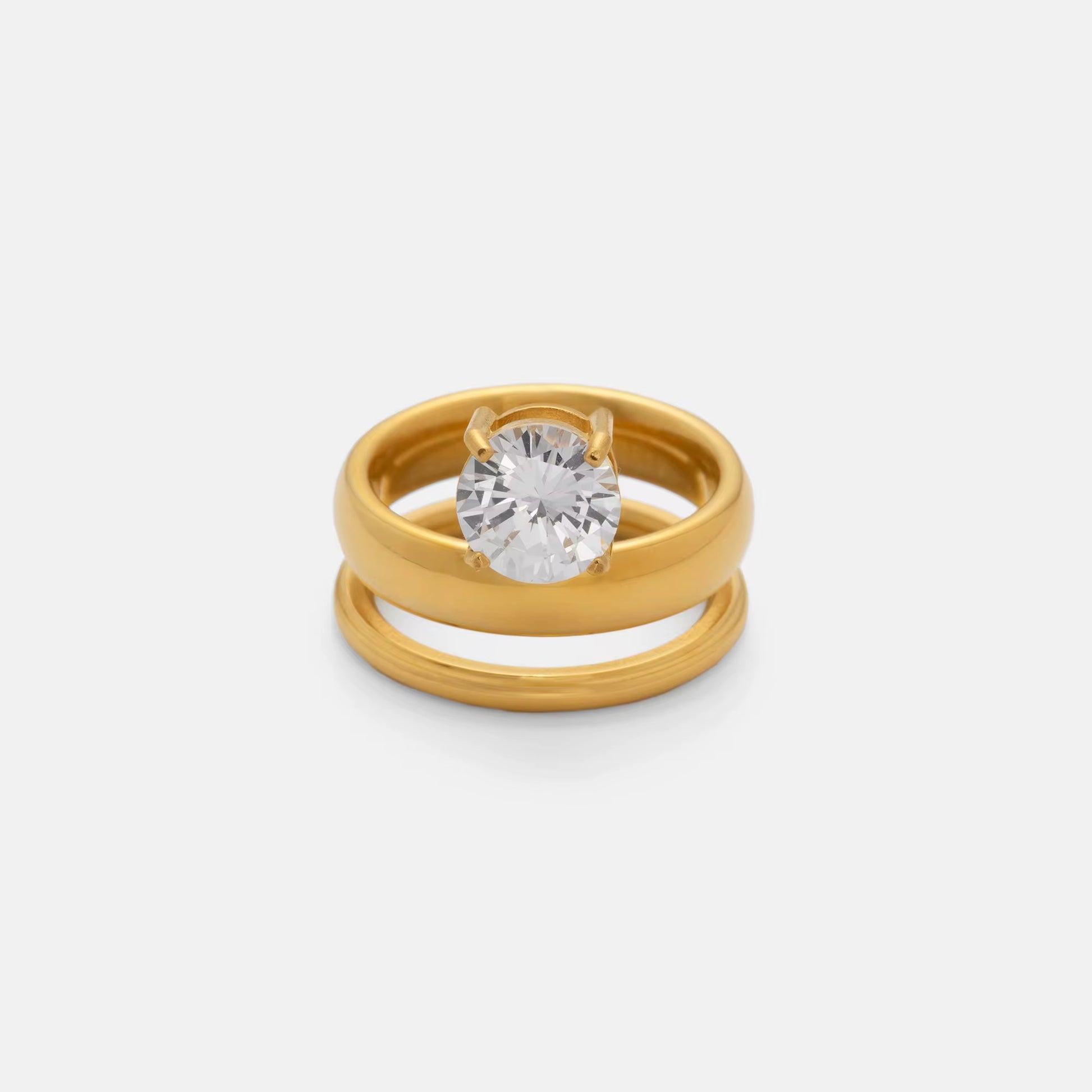 Crafted with 18K gold plating and hypoallergenic metals, this high-quality stainless steel ring features A+ quality CZ diamonds. It is anti-tarnish and water-resistant, ensuring lasting brilliance and elegance.