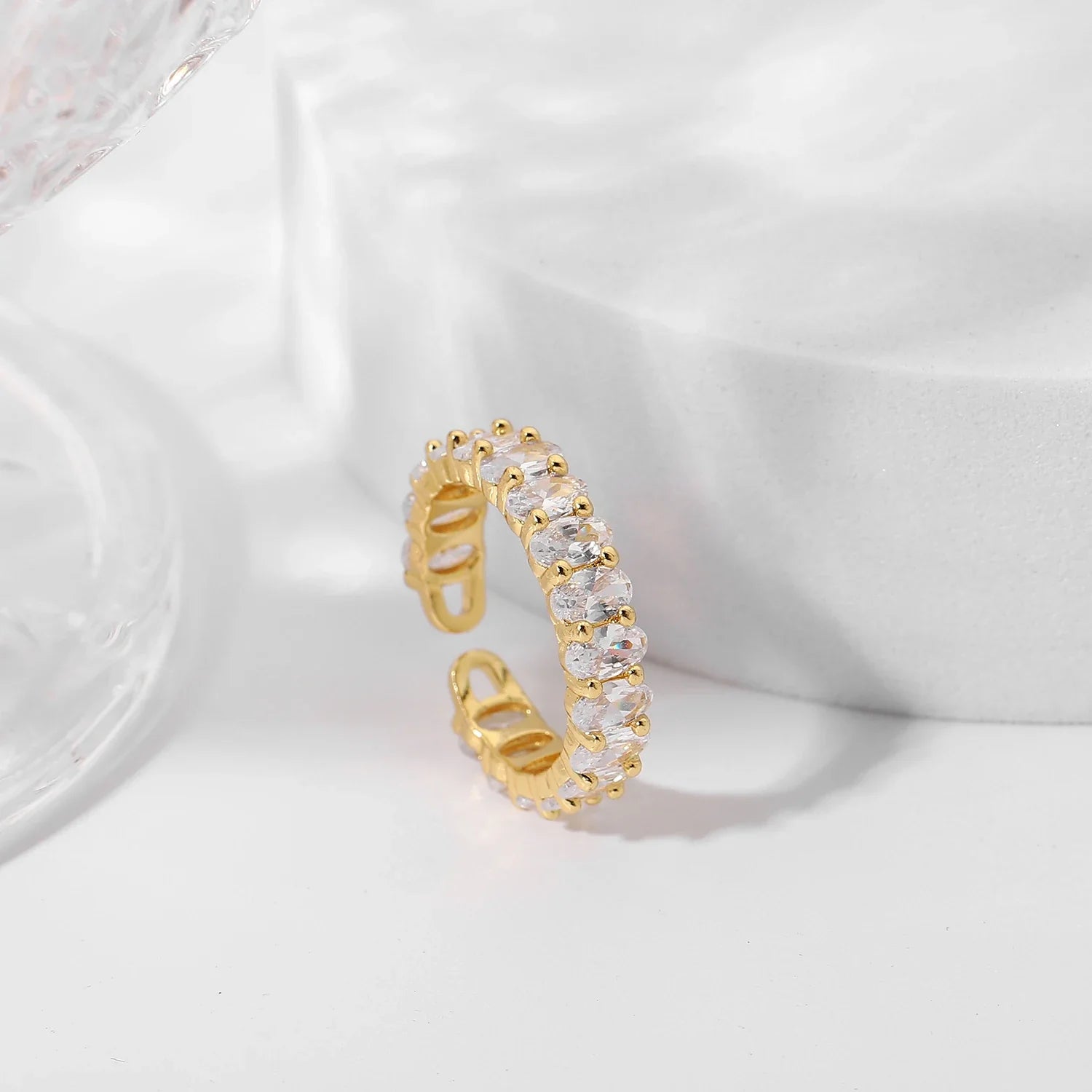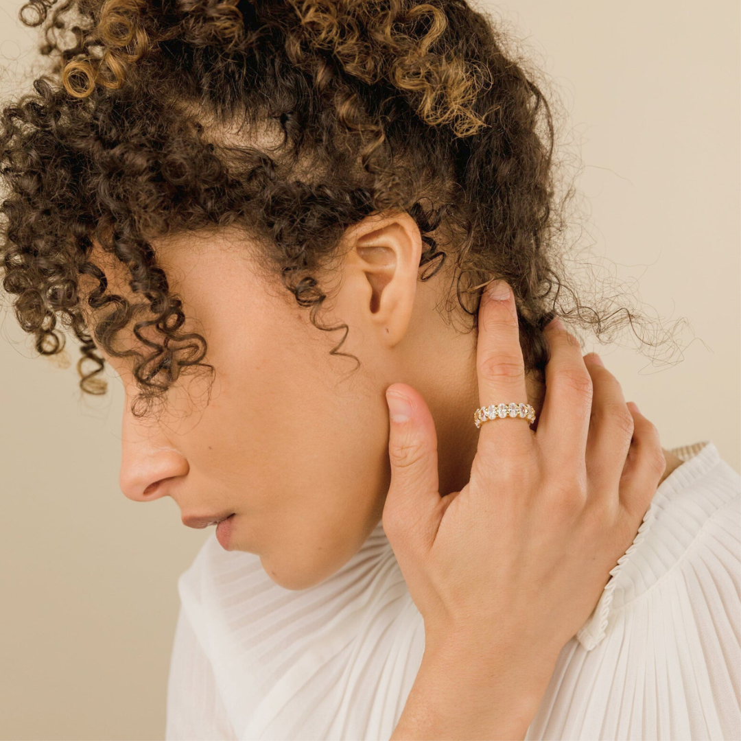 Diamond Luxe Ring - Crafted with pure 18K gold plating and hypoallergenic metals, this high-quality stainless steel ring features A+ quality CZ diamonds. This is anti-tarnish and water-resistant, ensuring lasting brilliance and elegance.