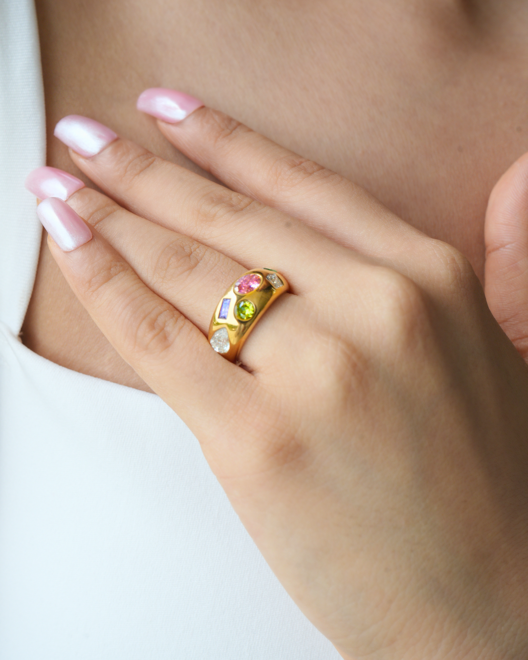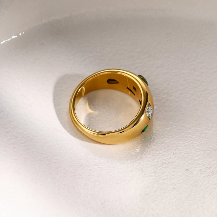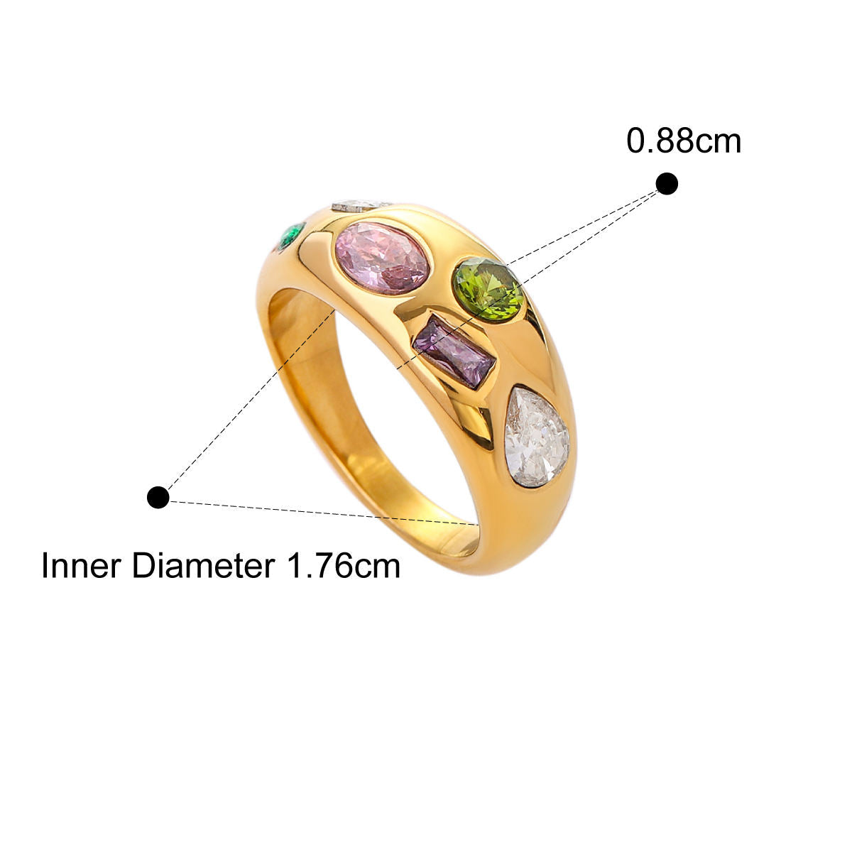 Crafted with 18K gold plating and hypoallergenic metals, this high-quality stainless steel ring features A+ quality CZ diamonds. It is anti-tarnish and water-resistant, ensuring lasting brilliance and elegance.