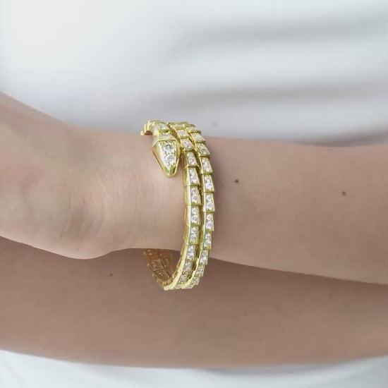 Made with high-quality, hypoallergenic brass and thick 22K gold plating for lasting shine and durability. Handcrafted to perfection, this piece is anti-tarnish and designed to exude timeless elegance with every shimmer. Featuring a striking serpenti design, each zircon is meticulously hand-studded by skilled... Read More